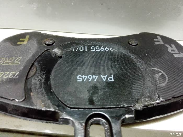 刹车片磨损情况,装刹车报警线的孔已经磨出来了