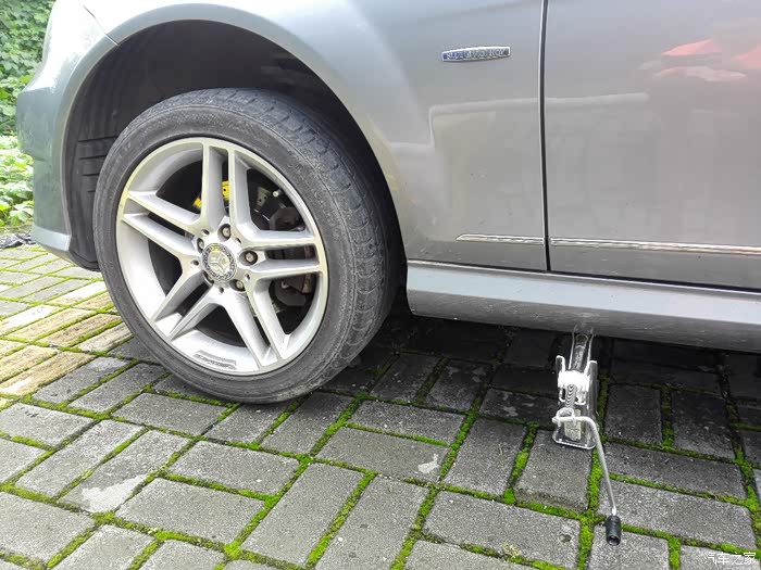 拆卸的轮子垫在车子下方,以防万一千斤顶失效,安全第一