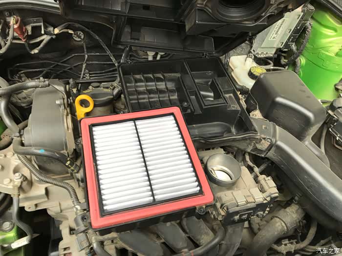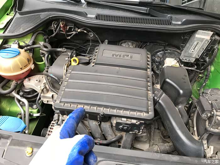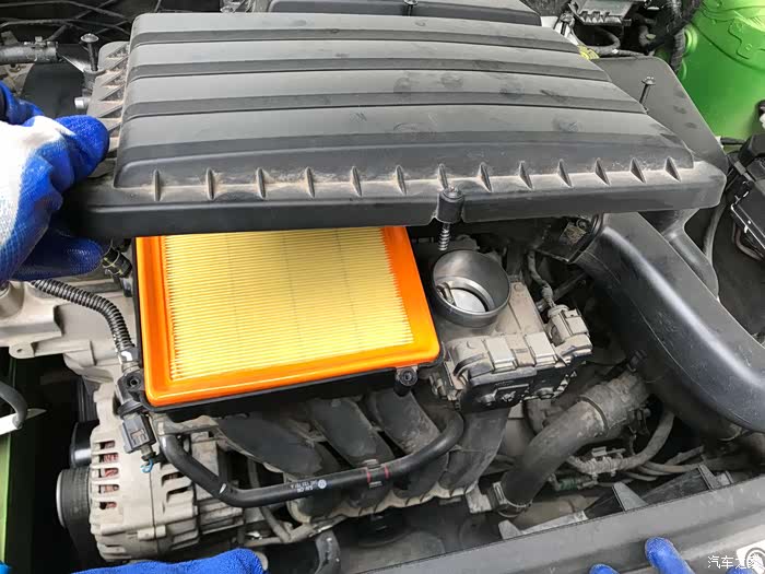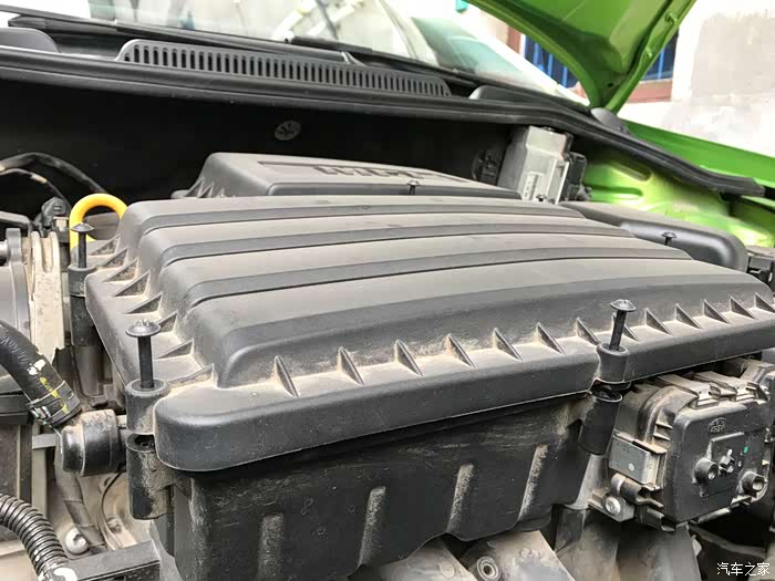 打开引擎盖之后,这是拿我的大众车举例说:空气滤芯在发动机盖板下面,比较好找,有的车型在一角,都不难找,不懂的可以去论坛里问问,我们热心的论坛网友也会积极解答滴~