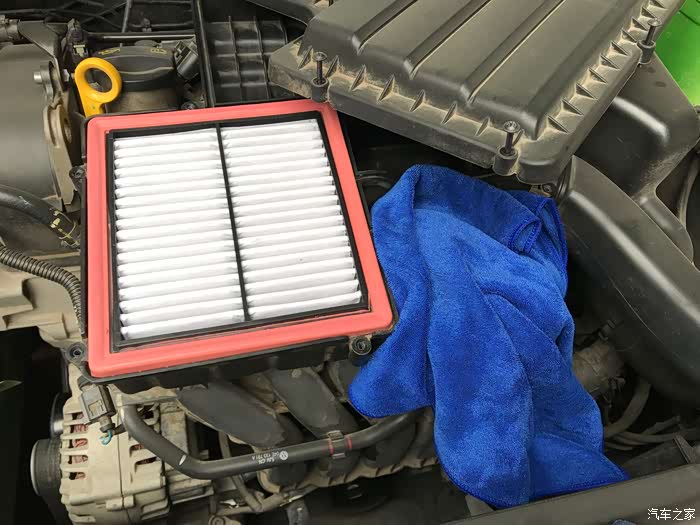 动手更换滤芯之前,找一块干净的布盖住节气门,免得滤芯上的灰尘等杂物掉进节气门里,这是很严重的事情~