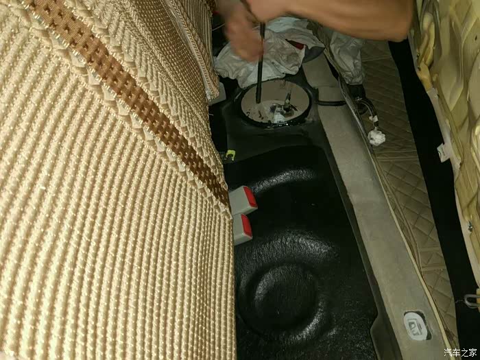 抽油的同时,开始取汽油滤清器,原来后排座椅可以这么取下来!!!