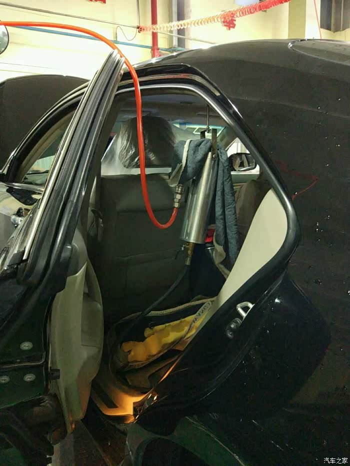首先是要把之前剩余的油液抽出来,现在在抽的是转向油;转向油的作用是能让方向盘变得轻巧,一般两年或者40000公里更换;