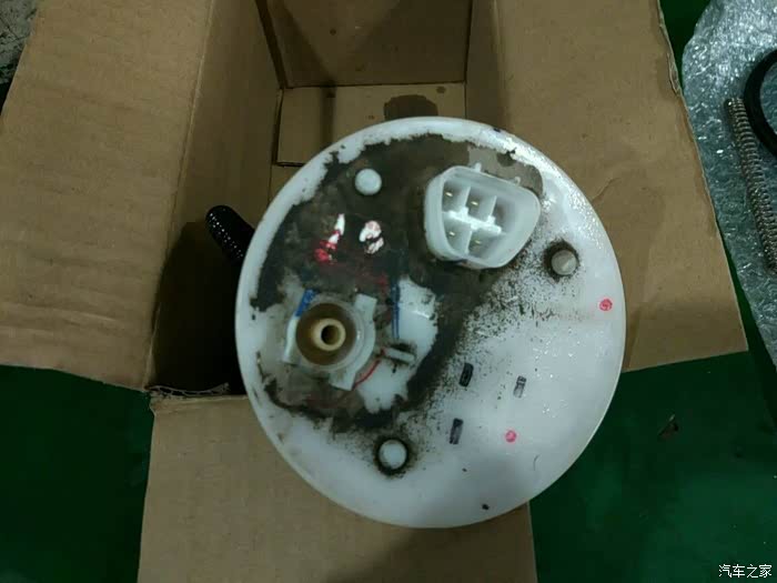 汽油滤清器取下来了,上面一层油污!真的很脏!