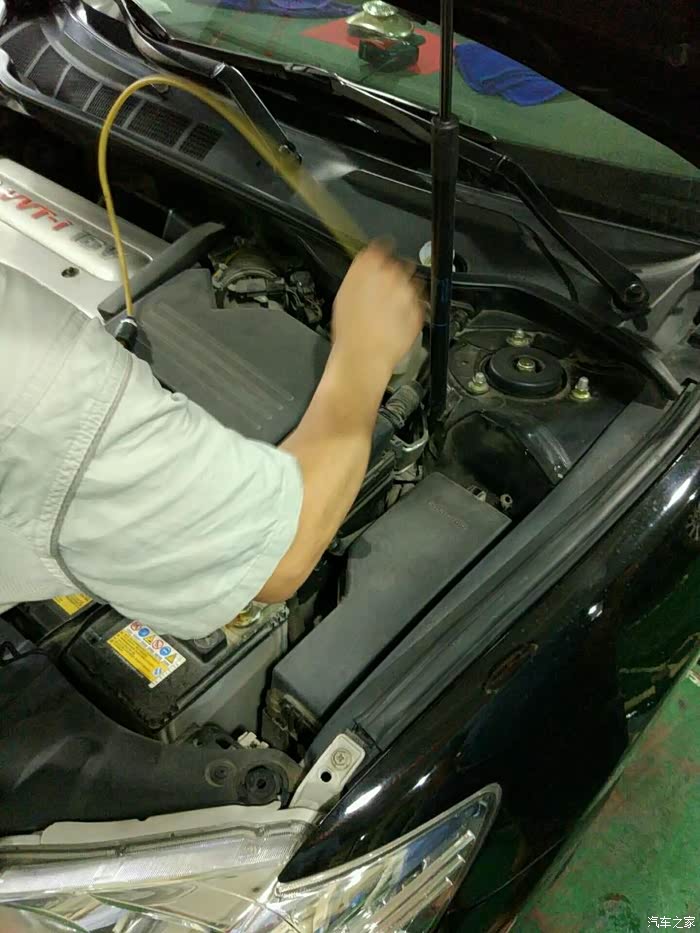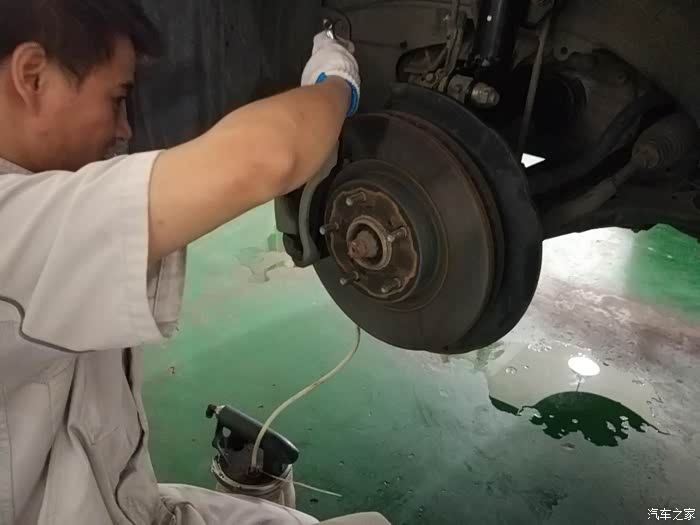 接下来就是把刹车油抽掉(手抖了一下 照模糊了 不好意思 各位老哥);刹车油一般也是2年或4万公里更换一次;刹车油还是非常重要的,影响着汽车的制动系统,师傅建议最好能按时更换,毕竟安全最重要;