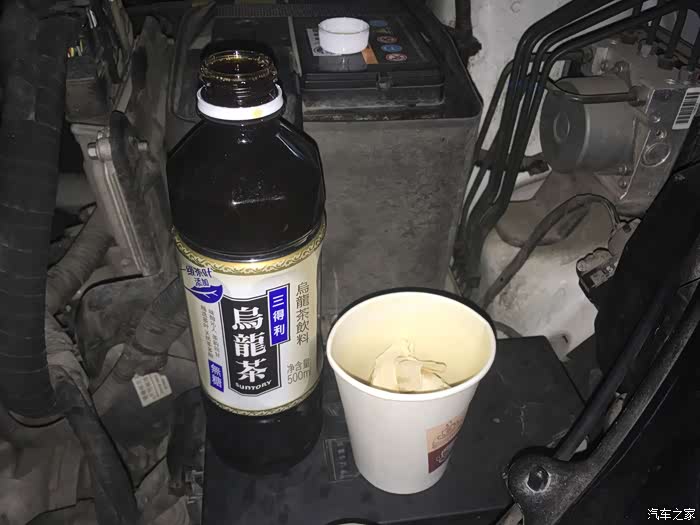 满满一瓶乌漆墨黑,这就是昨天刚刚灌进去的新机油,比三得利无糖的乌龙茶颜色还要深,咋那么黑呢??自己外面买的机油清透油亮。。