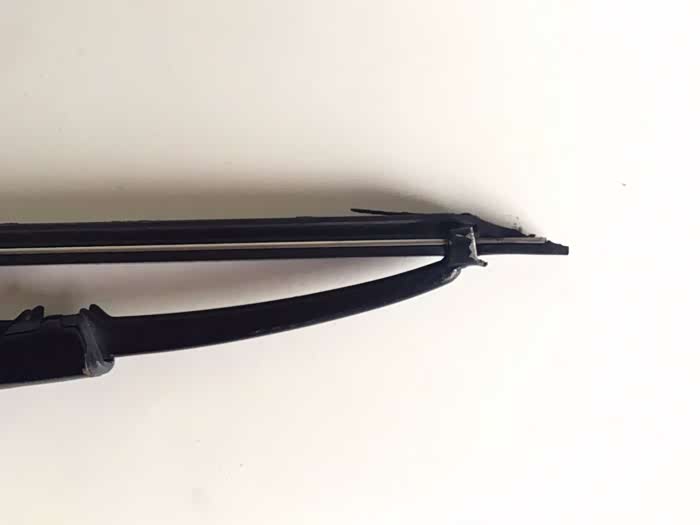 这是拆下来的雨刷器,胶条已经被磨平了,当然刮不干净了。