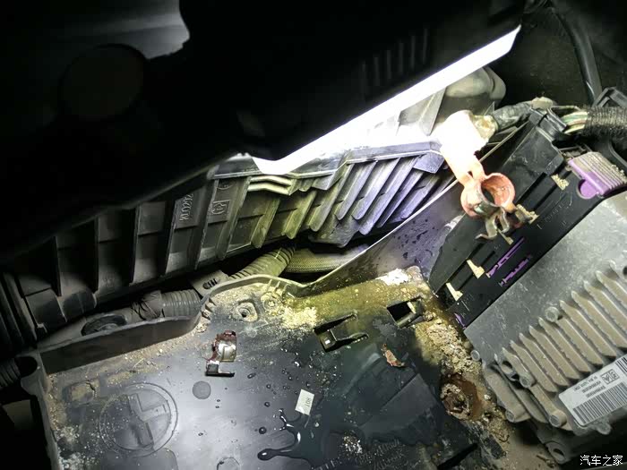 看看这是清洗后的,是不是腐蚀还是厉害,基本卡在电瓶没有什么劲了,所以最后拿铁丝先弄上,过些日子打算换负极线