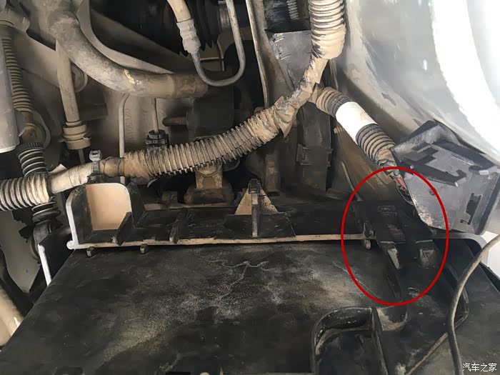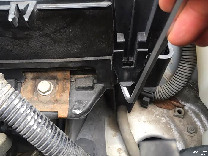 打开这个卡扣,电瓶正极就露出来了。