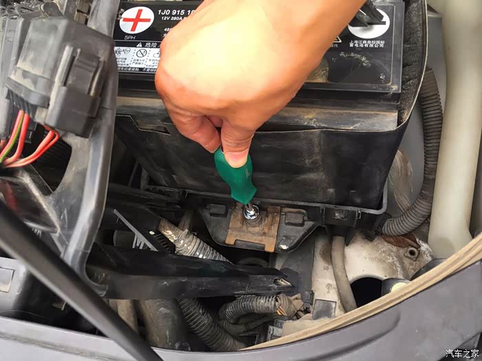 把电瓶搬出来,取下外面的保护套
