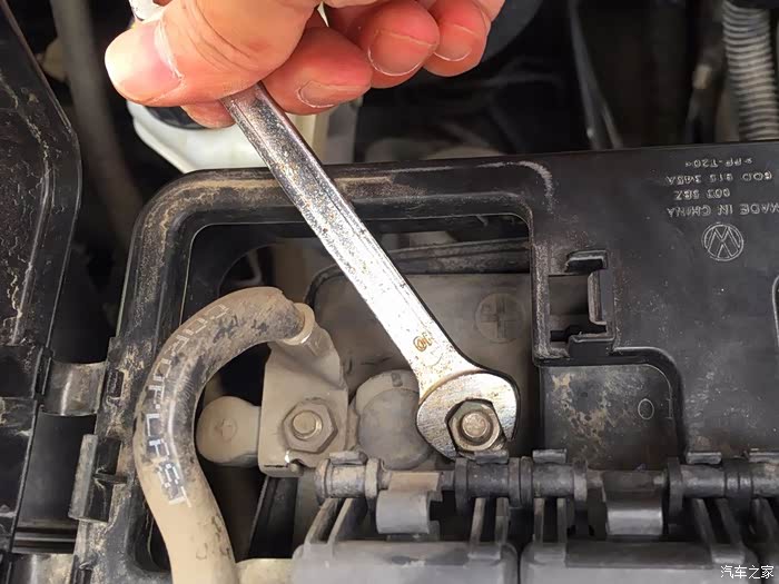 10号扳手拧松螺丝,即可拆下极柱连接线。