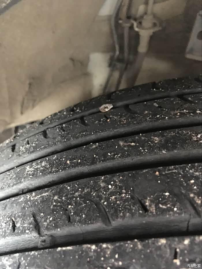 当时随即的查看了一下,发现了犯罪者就是扎这一个螺丝钉,看来扎了一个晚上已经足够把轮胎的气给漏完了