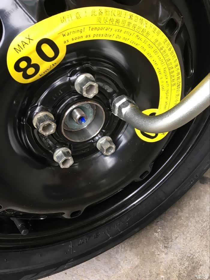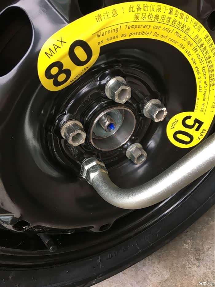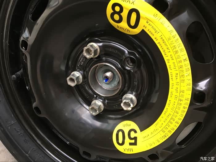 由于备胎采用的是钢制轮毂,相比铝合金轮毂要重不少。这样要鄙视一下为什么不上铝合金轮毂呀呀