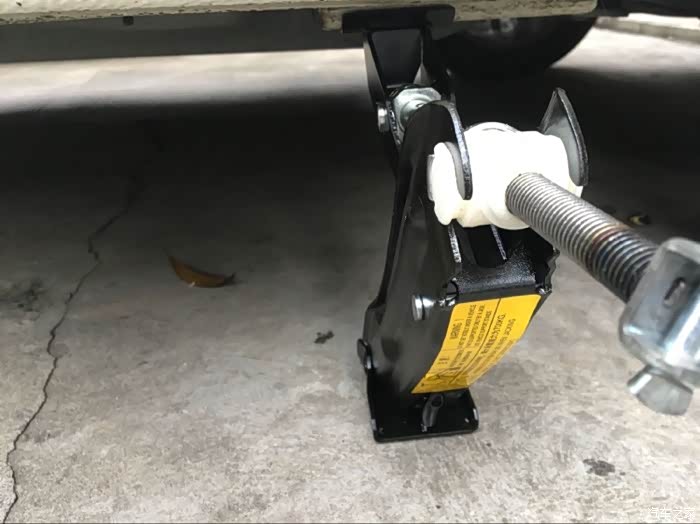 千斤顶慢慢的升高车身,但是也不用升的太高了,升到轮胎离地2-3公分就好了