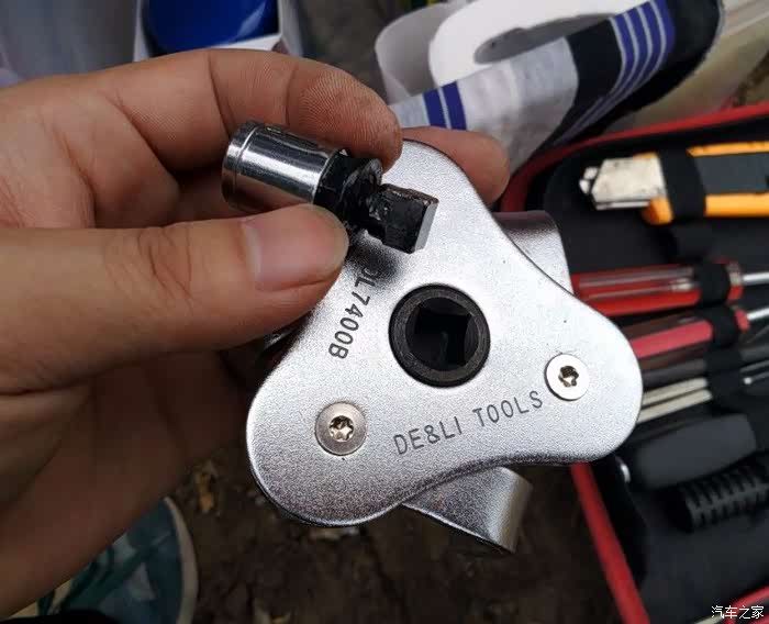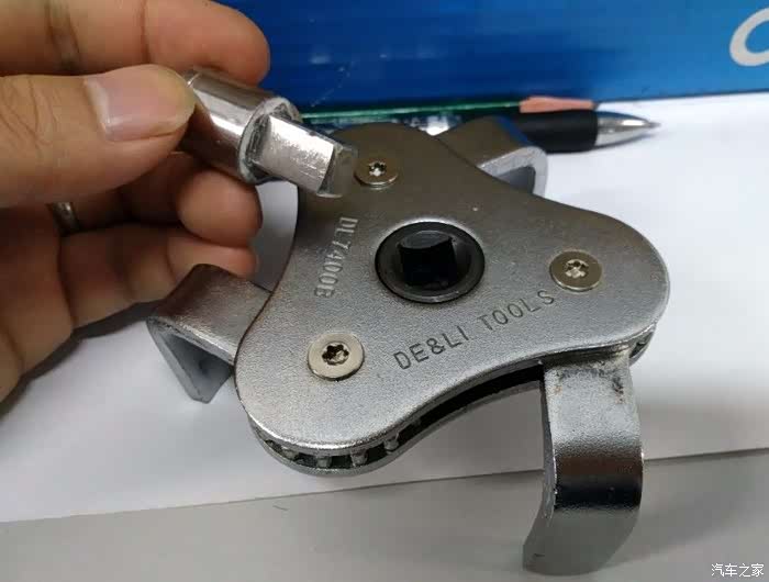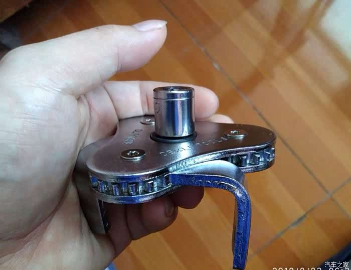 本来自己做了一个转接头,拧的时候用不上里,最后去朋友家里找了一个1/2的L型杆,配上买机滤扳手时送的转接头,才把机滤拧下来。