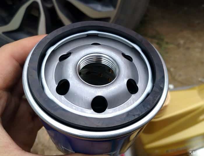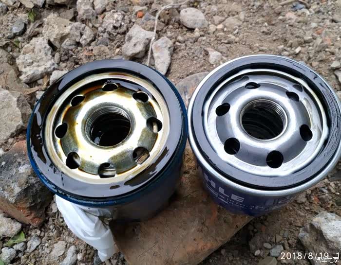 右边新滤芯,黑色密封圈,螺丝扣上都抹上机油了,看店里小工都这么做防止拧紧时太干涩吧。