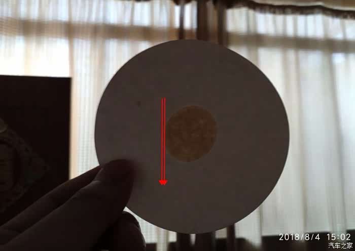 定性滤纸,测机油性能,最外圈的油环已经只剩一点点了,其实还可以跑两三千公里,不过店里45一升的机油,店里让跑5000更换,我跑了7000公里,也可以了。