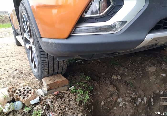 一直说在家菜地旁边挖了地沟,可门口又给堆上土了(图片远处)。之前这里是个大坑,只好在空地边选了个位置,能露出车头车底就行了。