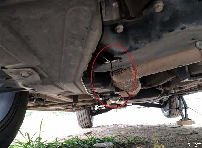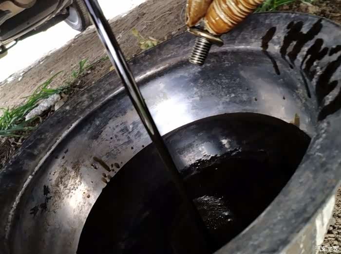机油口在右前,把左后轮打起来,希望能多空些机油来。