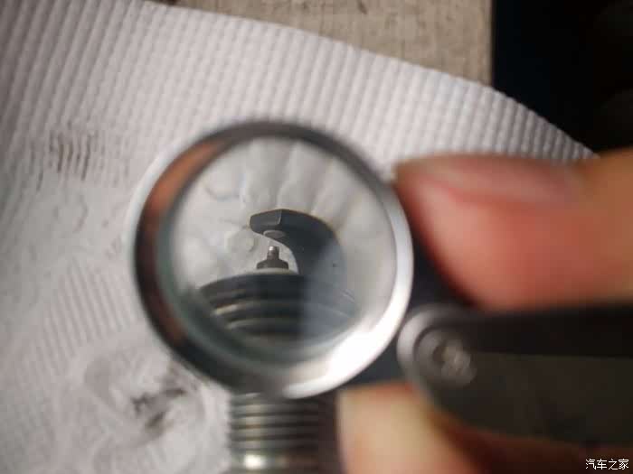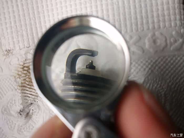 再放大看看,中心电极还很好,侧电极弯脖头那,烧的可以了。估计还能用几千公里吧,我平时长途少,就是上下班开,原车火花塞60000公里应该可以有。