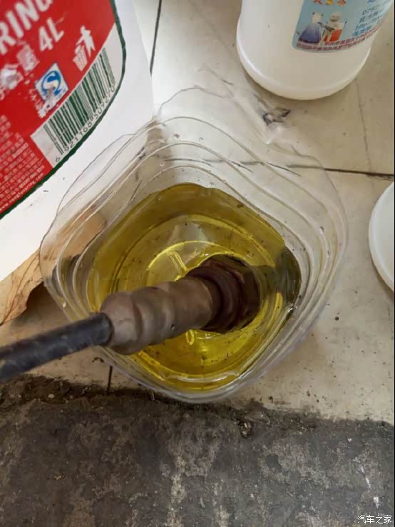 8. 清洗原车三元时找个能靠稳的地方,让管子倾斜不小于45度,能到70度更好,以保证三元能被完全浸泡到