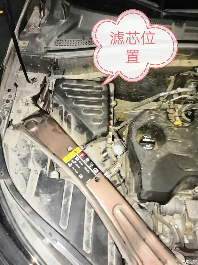 滤芯准备好,买的到家了。打开引擎盖,看到下图位置。