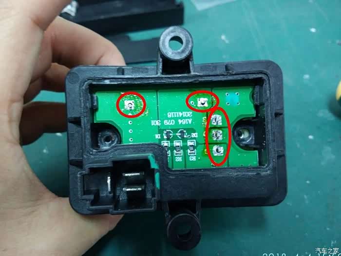 琢磨了半天,原来是要先焊开上图右侧几个焊点,还好手里有吸锡器,轻松搞定拆开。
