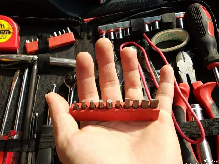 工具包里找到合适的梅花批头,开拆。