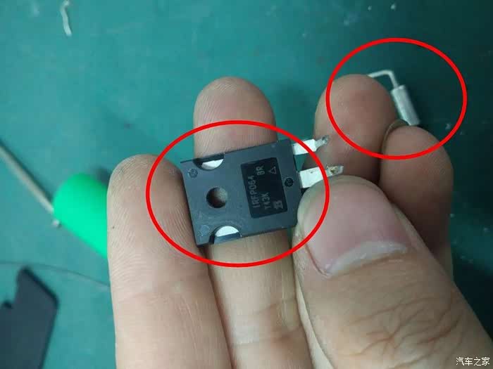准备从新涂抹导热硅脂,发现这个场效应管一个针脚,之前被我错误打开方式弄的快断了(手指正好挡住了),没办法焊接恢复,还好上面有型号。