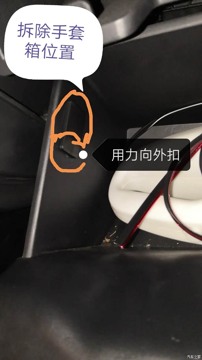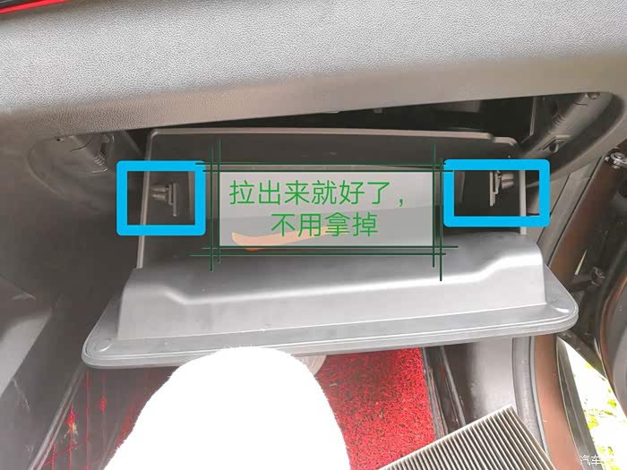 用力掰左右两端,将卡扣位置离开卡槽,取出手套盒。