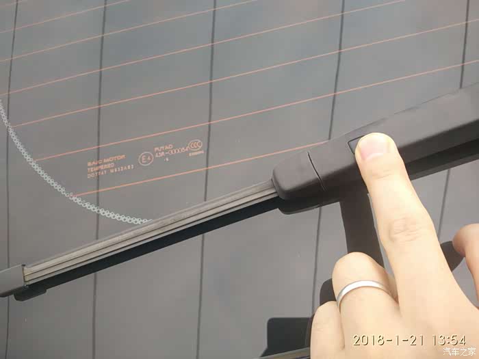 这是锐腾后雨刷器,右手按下去我手指处的点,左手向外拉雨刷器