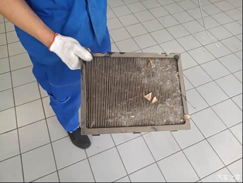 师傅在拆机滤,然后再给换上原厂的新机滤。