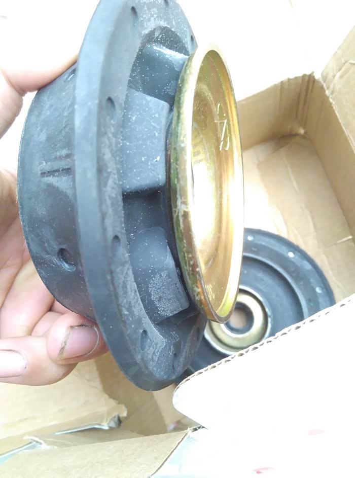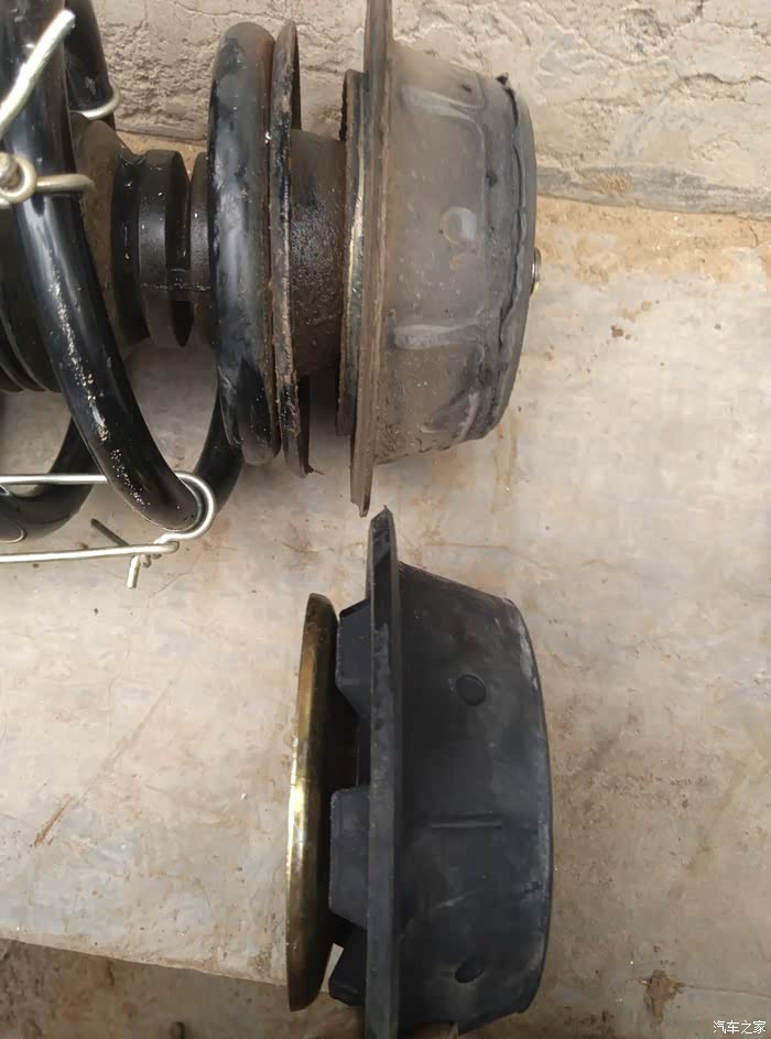 6年的旗云2,行驶12W+公里,状态还可以,最近走路 哐哐 响,检查发现顶胶不行了。于是网上买旗云2前减震一体顶胶平面轴承,左右两个包邮55元。