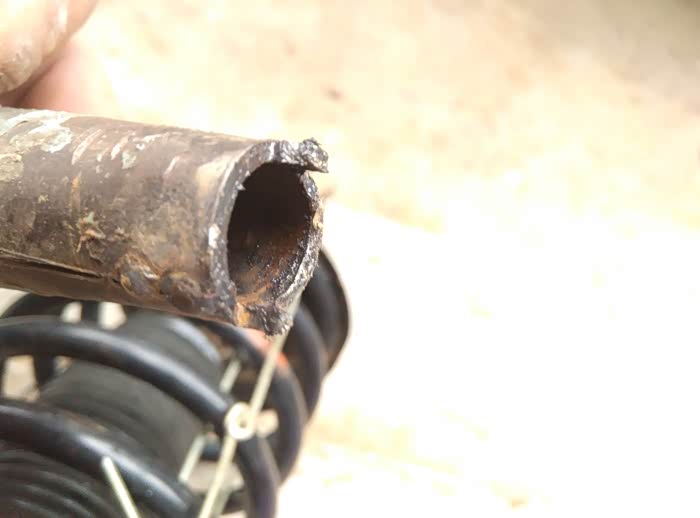 分开的避震器,防尘套还很软,没有破损,避震器没问题,6年多了,还可以。