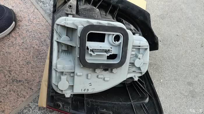 尾灯由两部分组成:灯罩和灯座。由四个卡扣固定,逐个拆掉它。