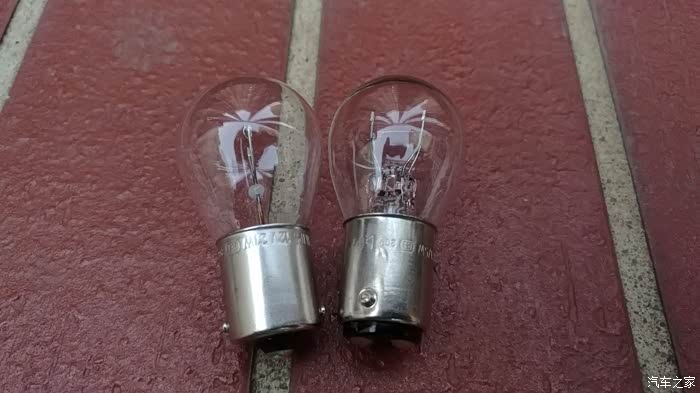 左为网购灯泡,2.5元一个,单灯丝;右为汽配店买的,10元一个,双灯丝。写的都是飞利浦品牌,不出所料,应该都是假货。
