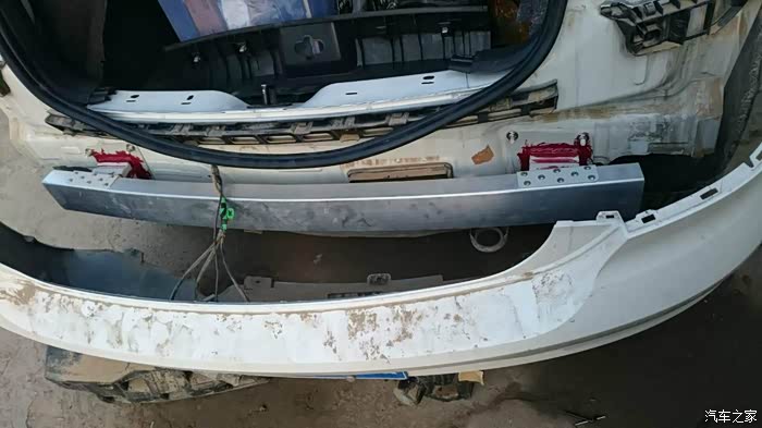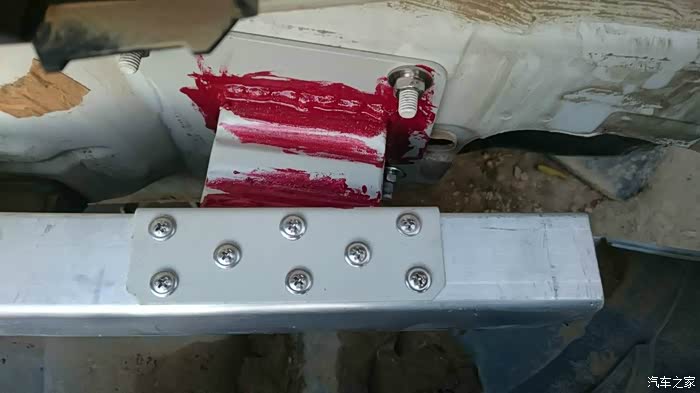 防撞钢梁,铝合金的,焊接的地方顺手刷的油漆。