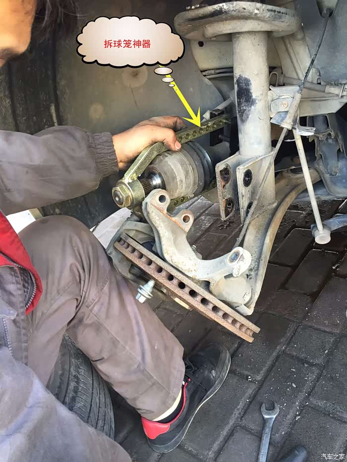 这里是一个难点,外球笼怎么拆下来?师傅说这个要看能不能敲下来,敲不下来就要整体换球笼。我去!那岂不是又要好几百?