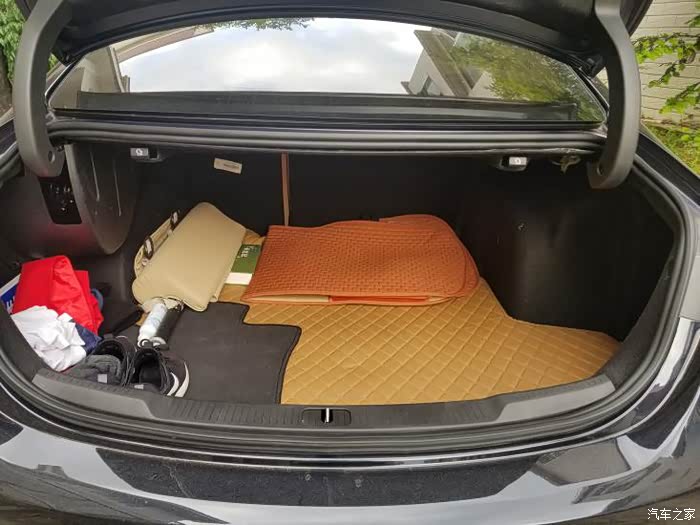 后备箱空间非常大。因为经常打球,所以放了几个垫子备用,防止打球后的汗被座椅吸进去。
