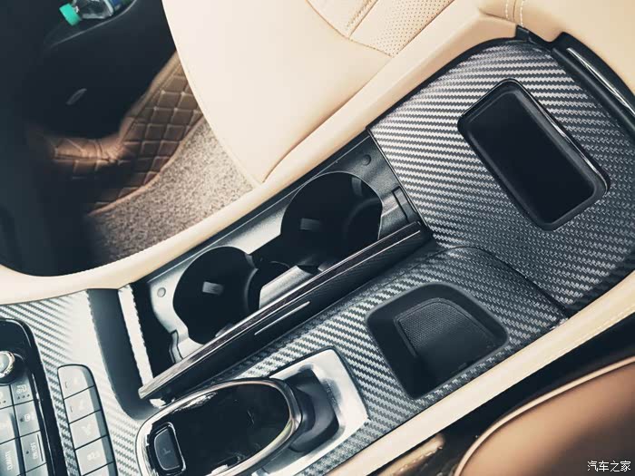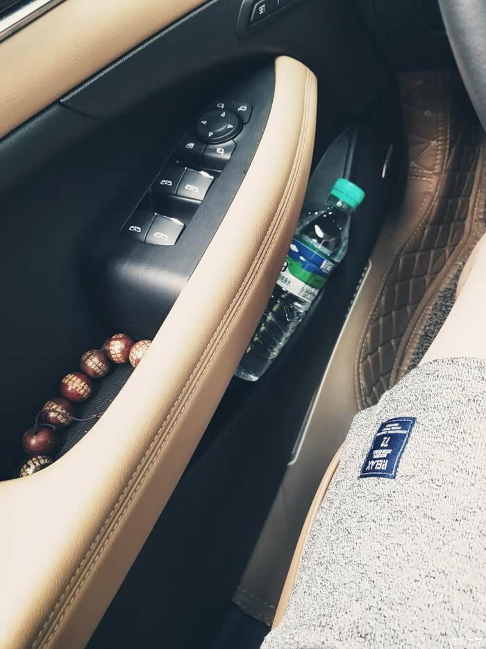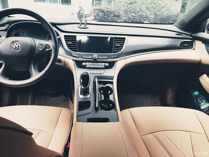 因为家里有小孩了,麂皮座椅不耐脏,就套了一个真皮套,中控贴了碳纤维的贴纸。