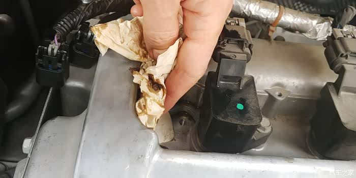 12、用纸巾或干净的布把阀体带出来的机油擦干净。