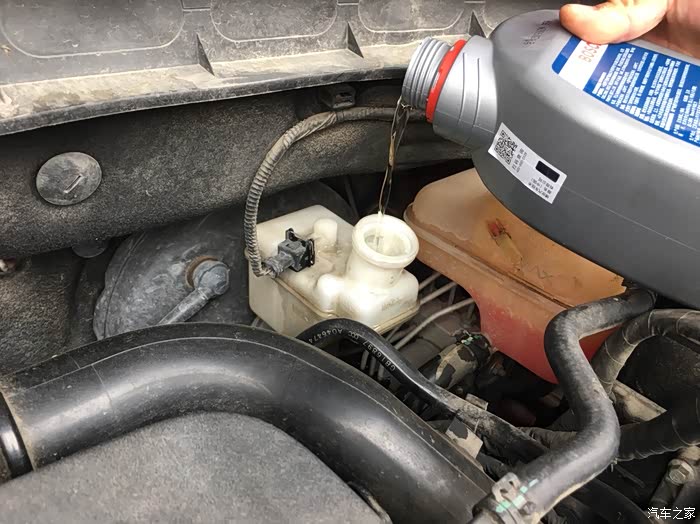 制动液用的博世,也不知道好不好,反正是个牌子货,制动液也有型号,怎么看自己车用什么型号呢?看制动液注入口的盖就知道了,上面有标注添加型号。