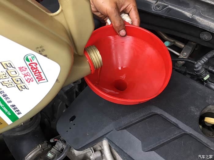 十次保养应该有六次用的这油,嘉实多极护5W-30。上次用的蓝壳,感觉发动机噪音大多了,换完这个发动机不管是怠速还是跑的时候。