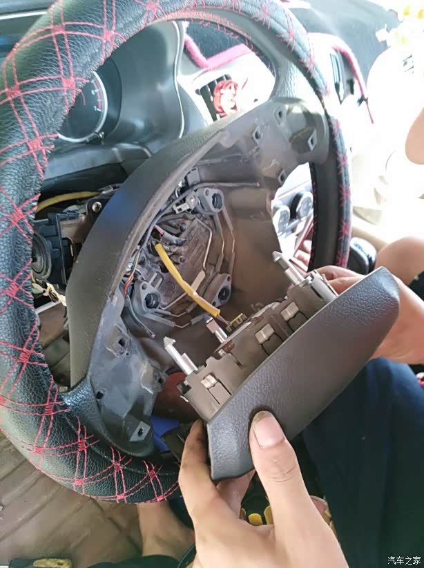 转动方向盘一边一个十字螺丝 先要拆了 不然无法拆气囊下来的 因为空间太小