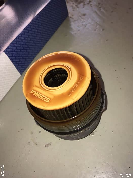 换机油滤滤芯的时候记得换这个盖子上的密封圈,看到了吗?黑色那圈。拆下来。新的密封圈套上去,然后记得用手沾旧机油再密封圈上面图一圈(这样有利于密封,我特意问过标致修车的师傅了)