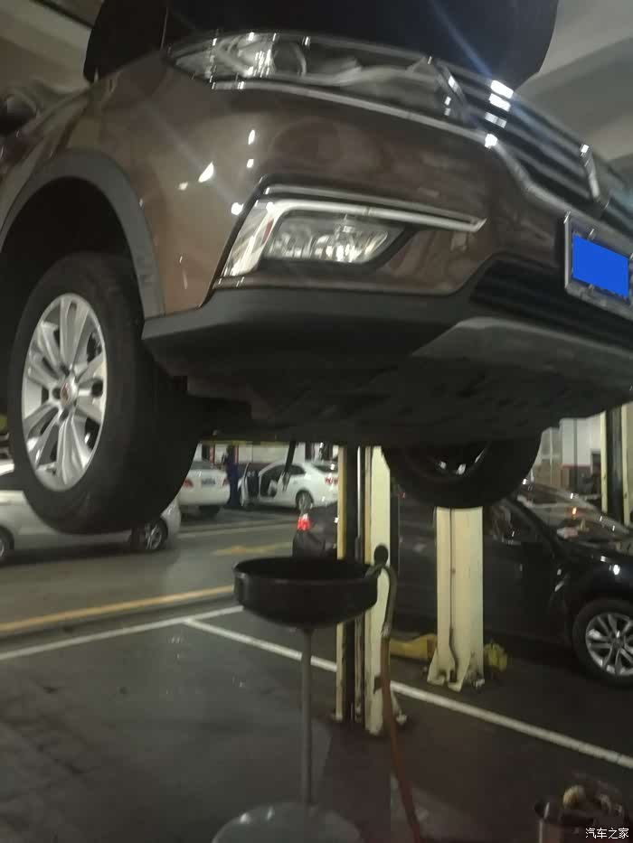 到了4S店果然没什么人排队,按惯例穿衣,戴帽,穿鞋我就不拍了,直接就从上架子开始吧。最近看到论坛里有车友,自己在家还机油,谁实话我也挺想尝试的,但我有点怕,毕竟动手能力太差,怕把车子折腾坏了。