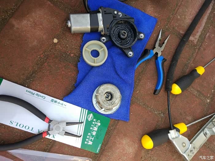 才买的二手车,买来右前车窗就降不下去了,逛论坛看到可能是齿轮坏了,遂宝购置,论坛里还有一位兄弟有发过教程,我也参照了一下,在不一点吧