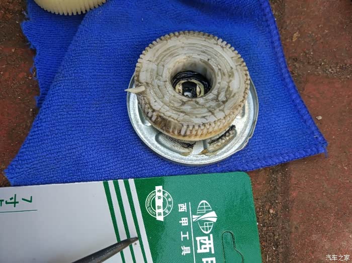 这是拆开的盖子,盖子和本体有3个牙口,我是用尖嘴钳子一点一点别起来的。里面有个卡箍,要用到卡箍钳子,我零时去买的7号钳子