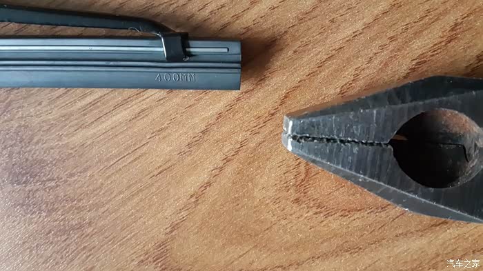 转180度再看另一边,小卡子处没有凹槽,就从这边下手,钳子上场,用钳子夹住雨刮胶条向外拉出即可。(真心建议用钳子,同时,一定戴手套,不然,说是十指黑一点都不过分,还不好洗)