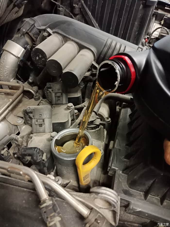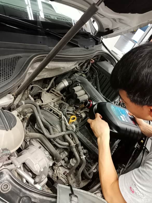 新机油5w40的,不怎么滴的油,说实话,到了三年我就得外面保养了,用好点的机油才行,4s收费太坑了。