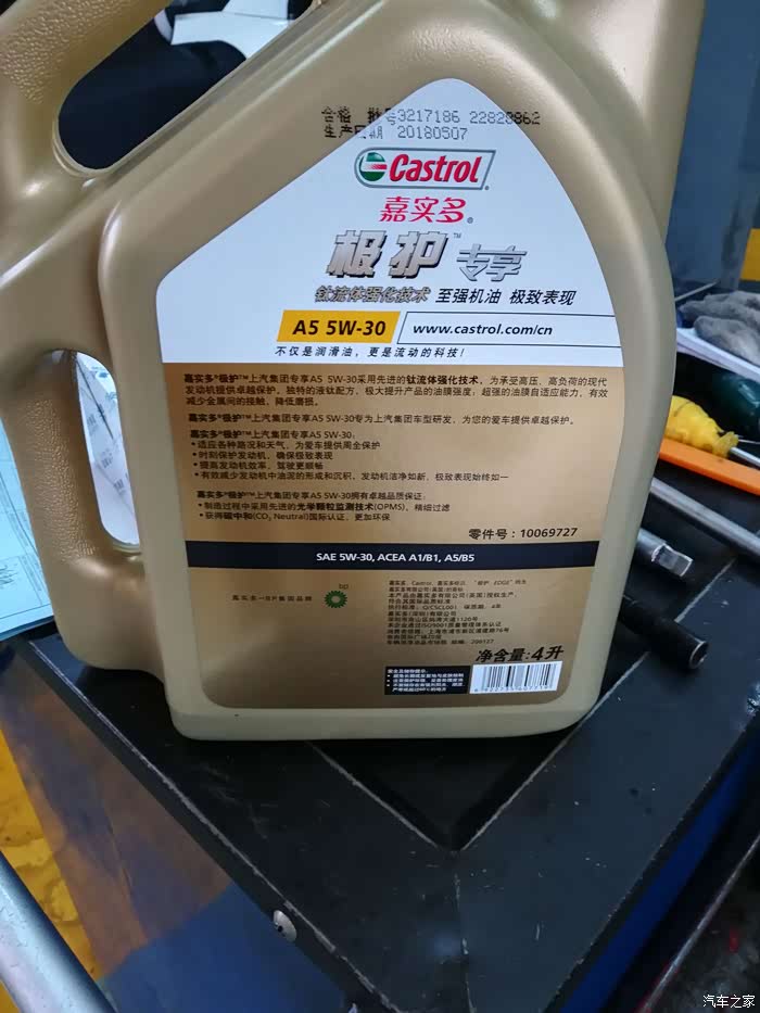 机油选择了嘉实多极护5W-30,首保好像也是用的这个,继续使用吧. 因为买车赠送的二保卡只含常规保养的一些费用,升级嘉实多需要额外补差价,计468-305=163RMB. 没错,嘉实多机油RMB468.00,昆仑RMB305.00.